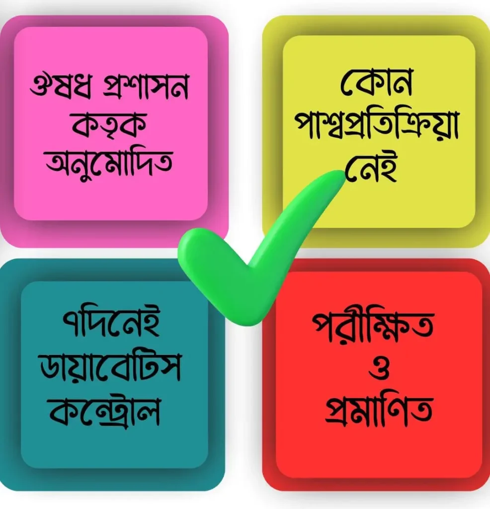 - সাতদিনেই রেজাল্ট, ইনসুলিন ও অন্যান্য মেডিসিন লাগেনা।