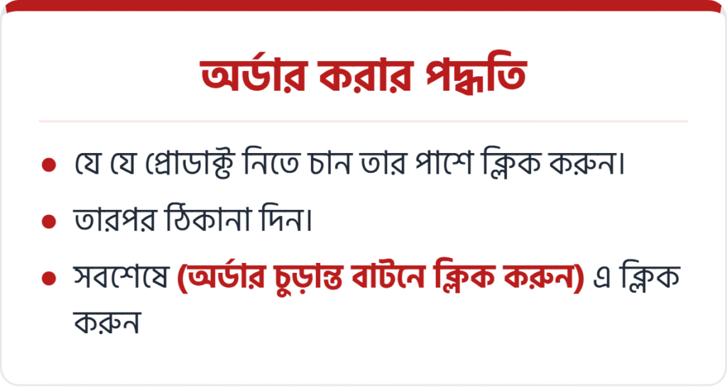 - খাওয়ার নিয়ম প্যাকেটের ভিতর দেওয়া থাকবে।